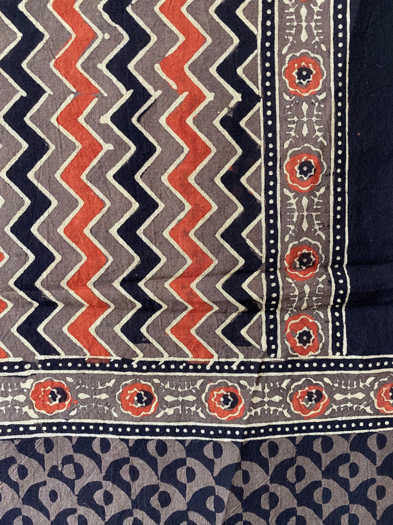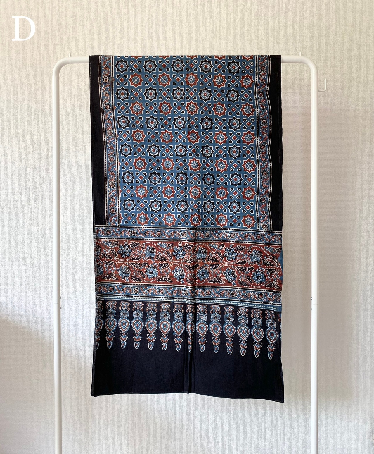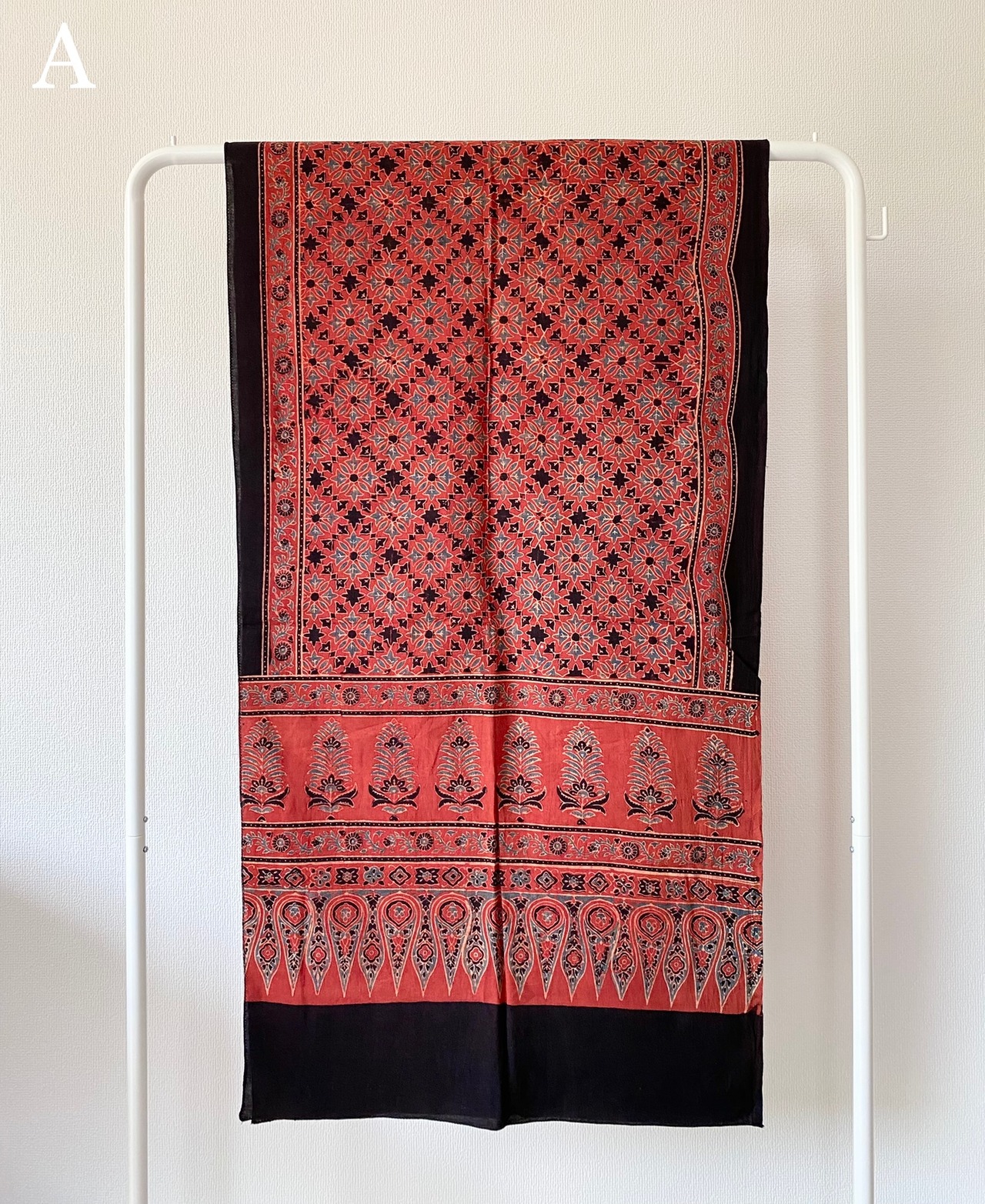 インドの伝統的な技法で、木版を使って染料を布に押し付けてプリントされています。全ての工程が手作業で作られるため、機械では出せない手作りならではのぬくもりが感じられます。