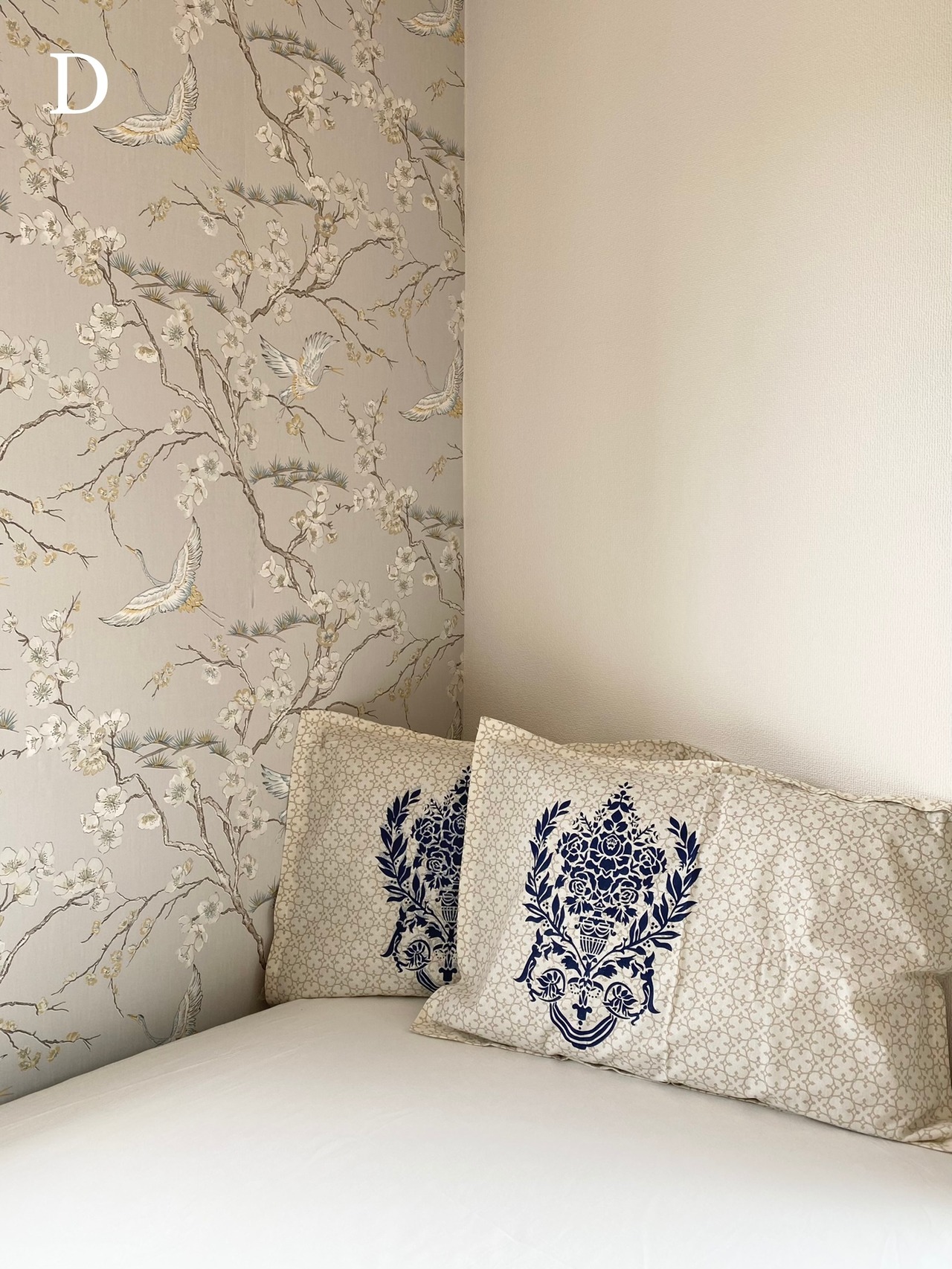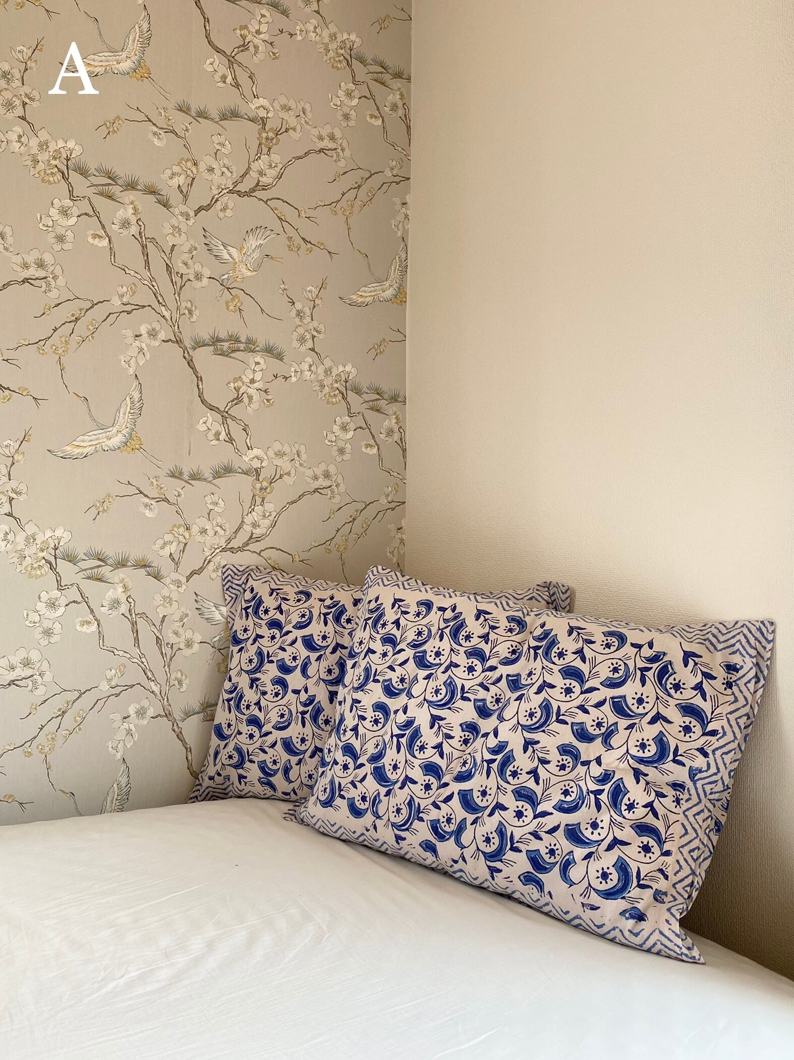 インドの伝統的な技法で、木版を使って染料を布に押し付けてプリントされています。全ての工程が手作業で作られるため、機械では出せない手作りならではのぬくもりが感じられます。