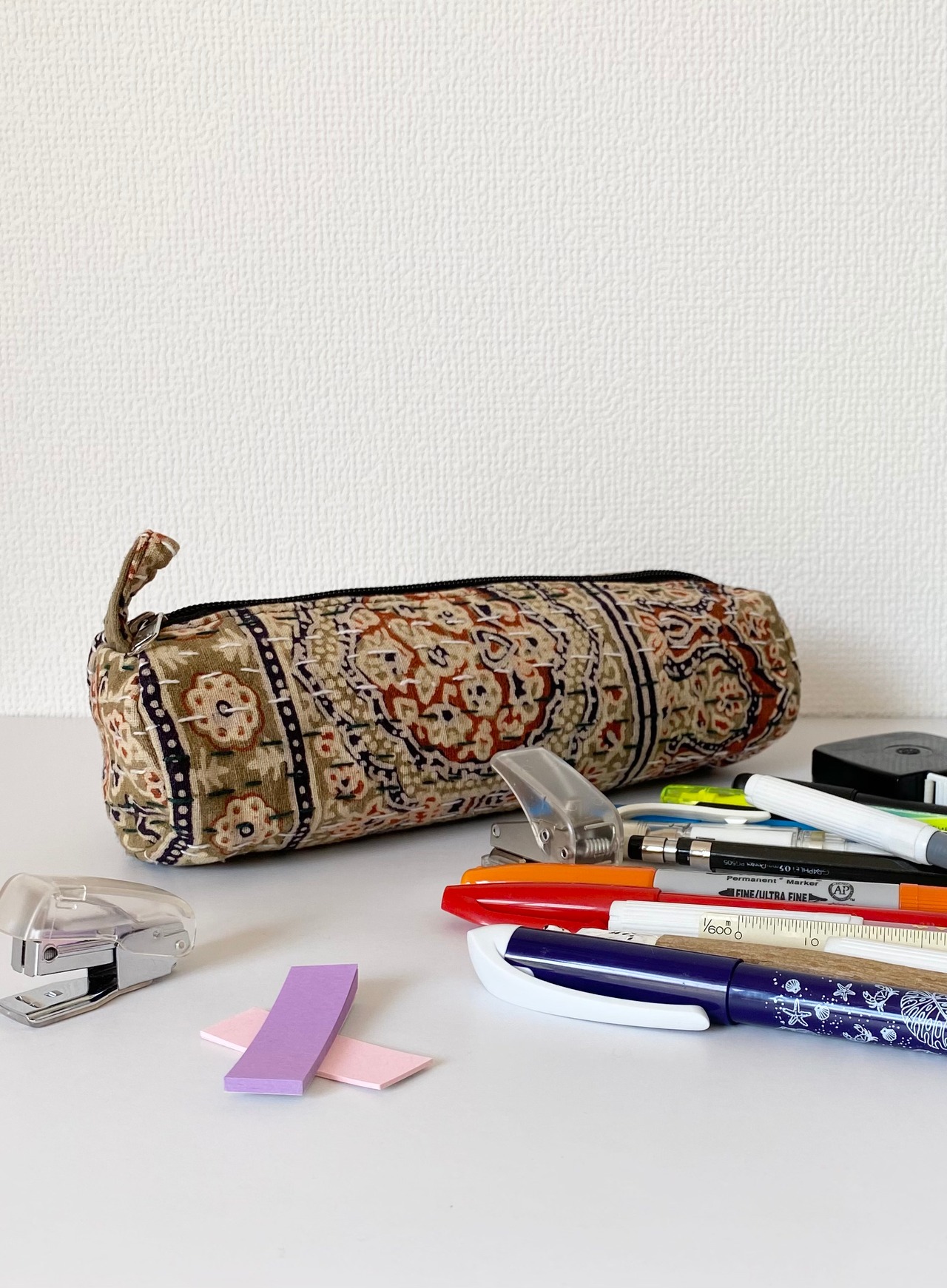 ペンや文具がたっぷり入るサイズです。ガジェットポーチや、トラベルポーチとして使用するのもいいですね。
