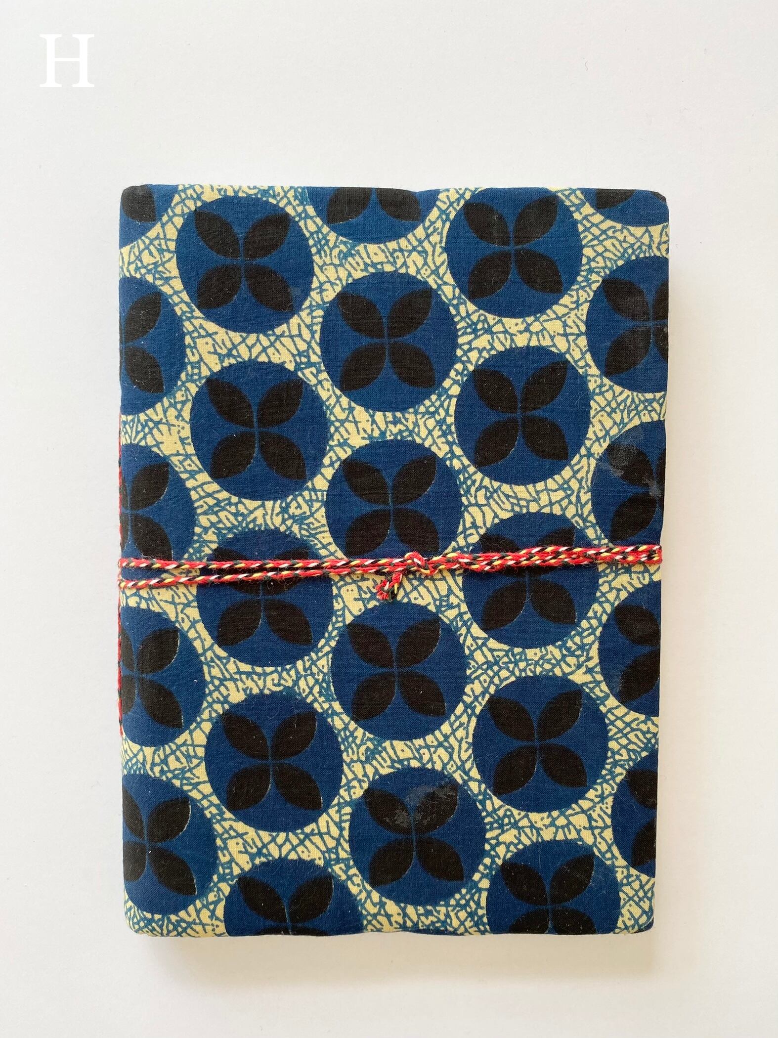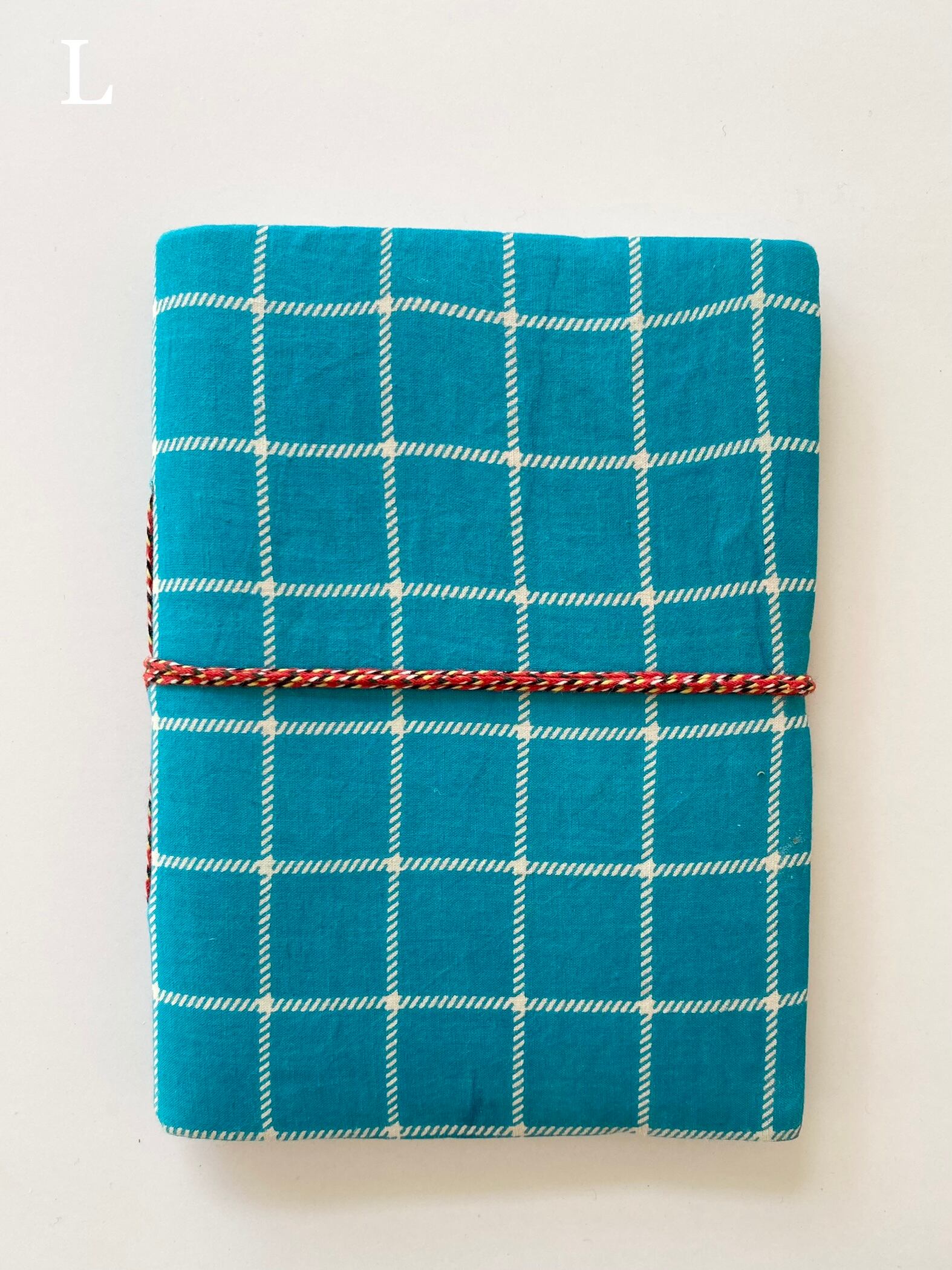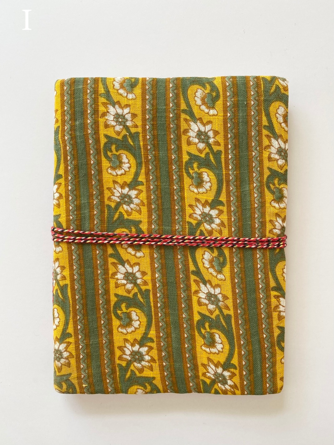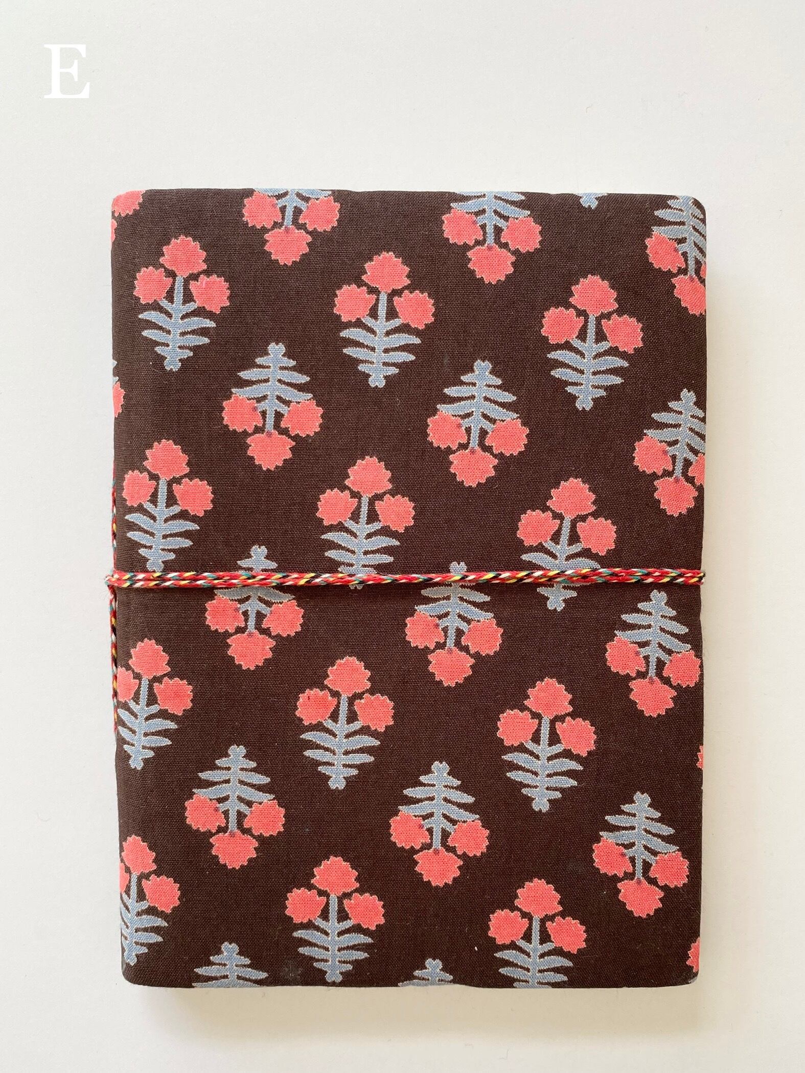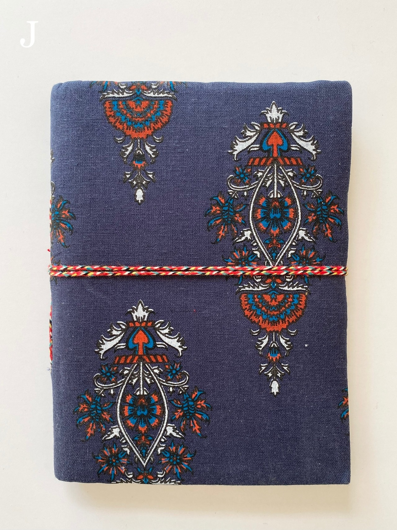 カバーはブロックプリント、中はコットンをリサイクルした手漉きの紙を紐で閉じた、オールハンドメイドのノートです。少し厚みや凹凸があり手触りが良く、漂白された紙とはひと味違う温もりを感じます。