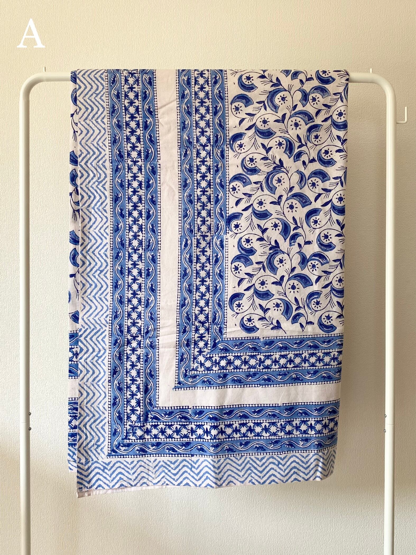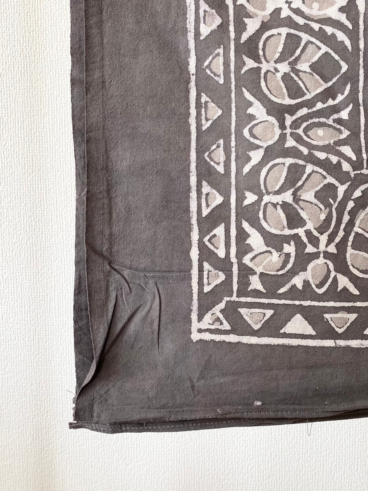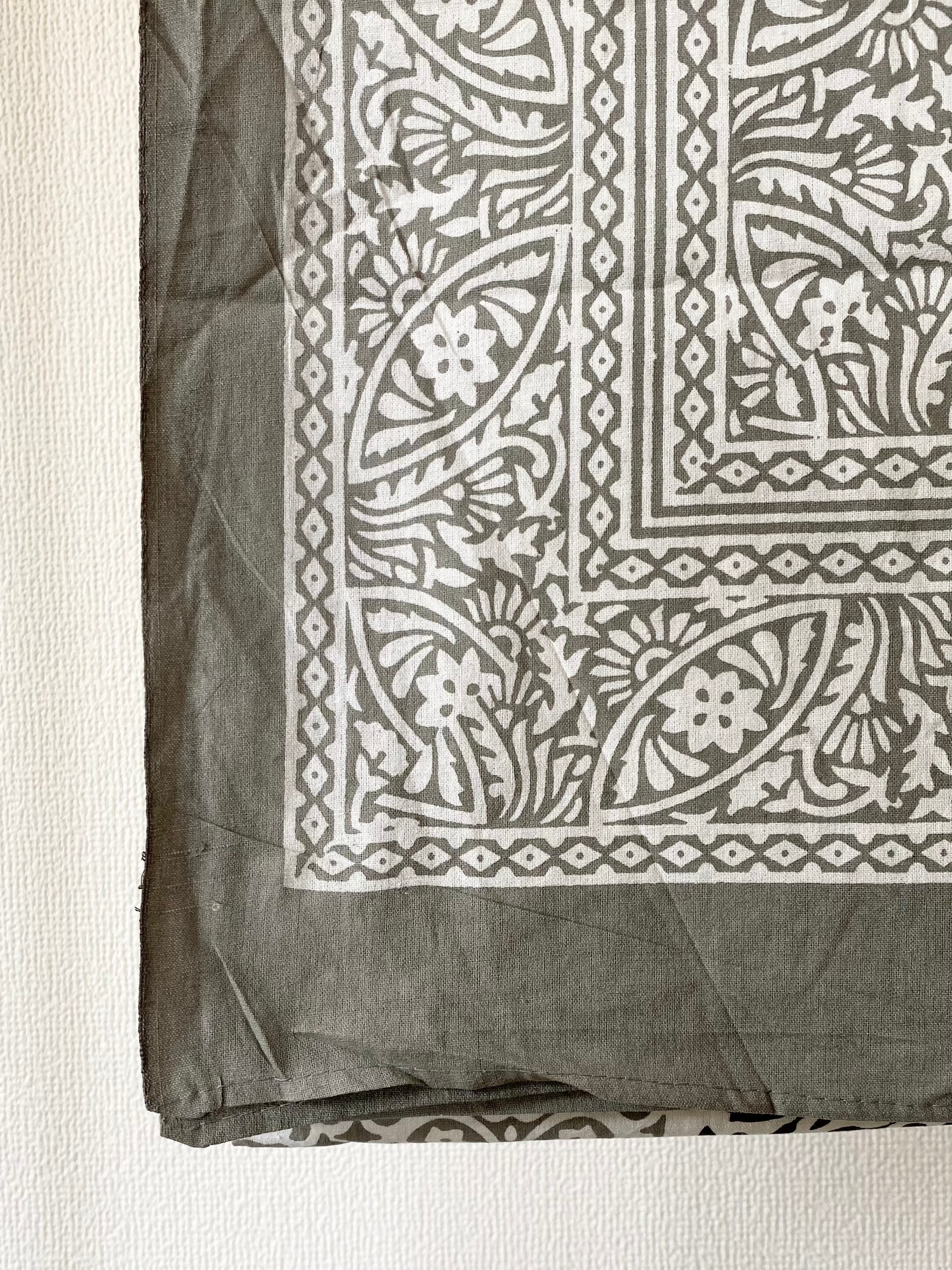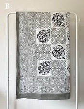 インドの伝統的な技法で、木版を使って染料を布に押し付けてプリントされています。全ての工程が手作業で作られるため、機械では出せない手作りならではのぬくもりが感じられます。