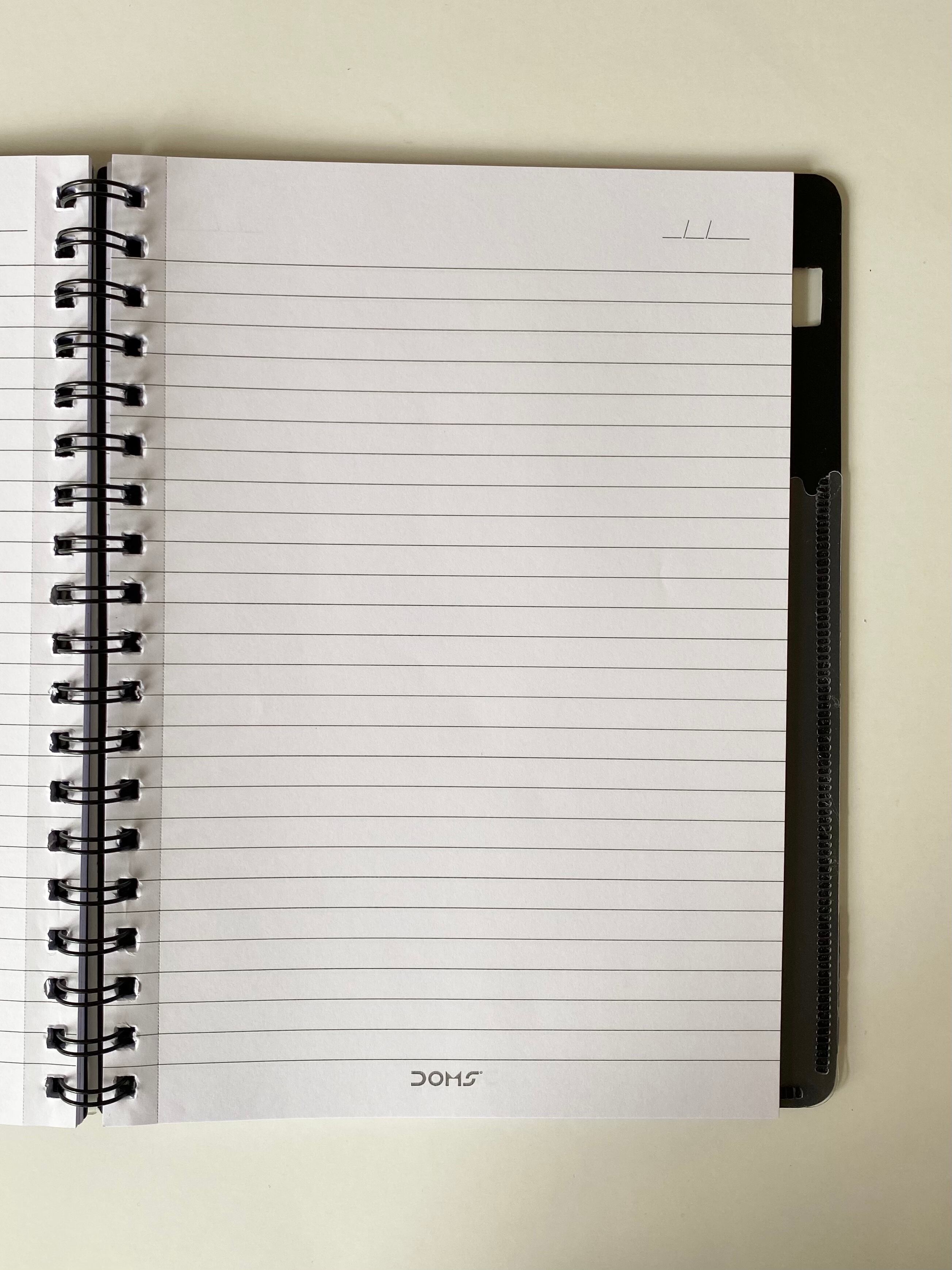 シンプルなリングノートの裏表紙には、クリアポケットとペンホルダーの穴があります。 25cm×20cm 160pages