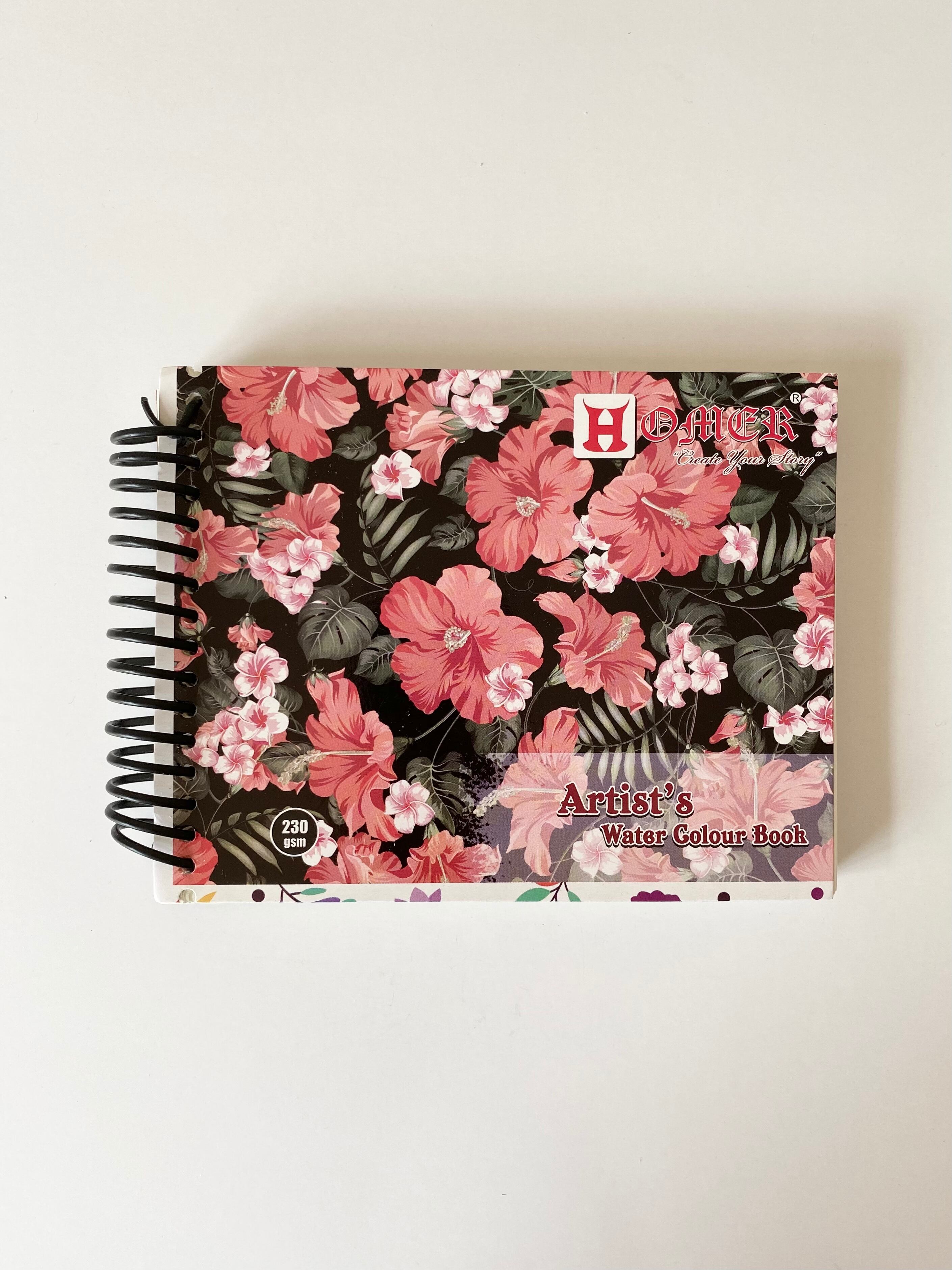 太めの黒いスパイラルリングとハイビスカスのイラストがとて素敵なスケッチブック。