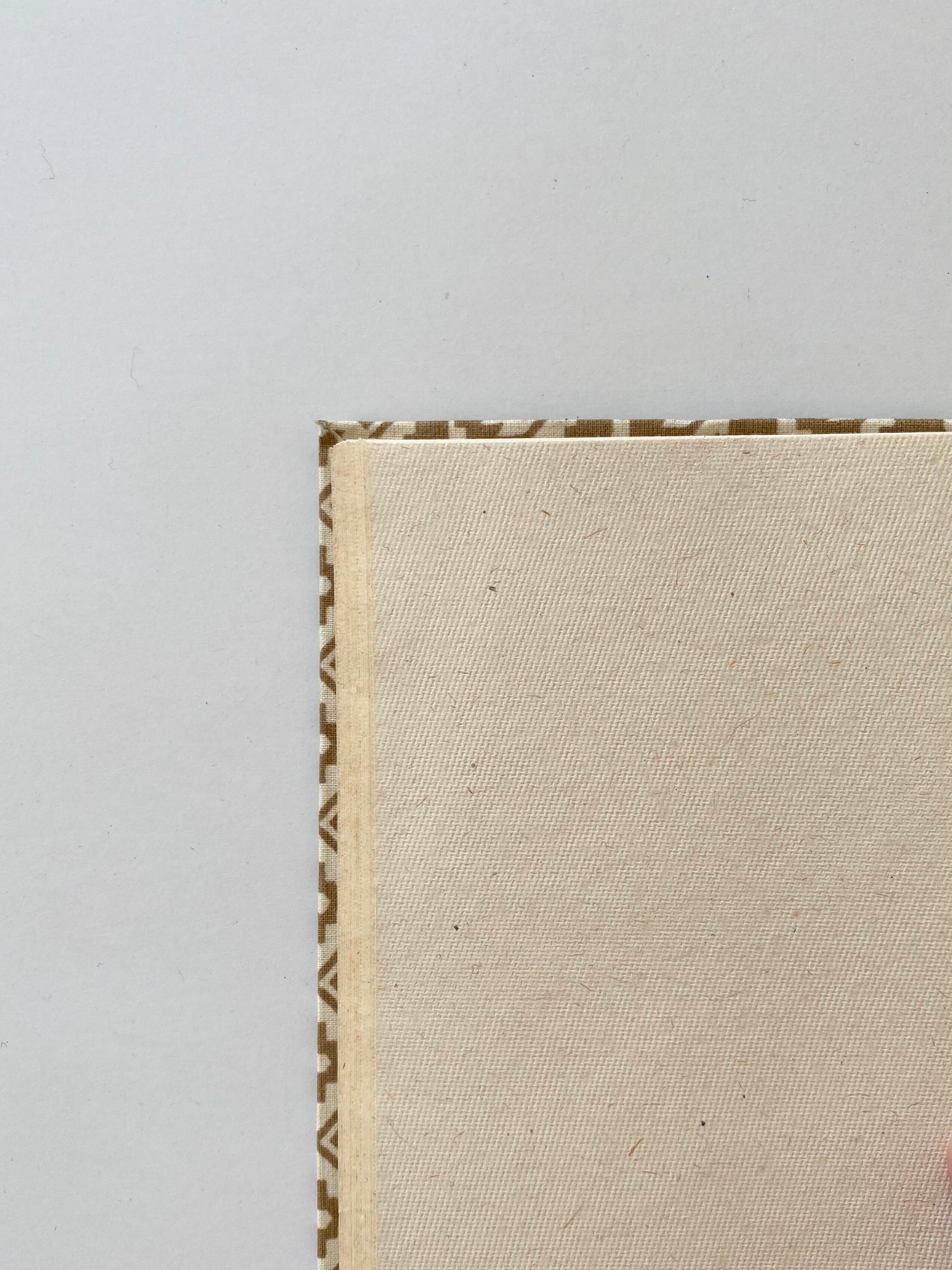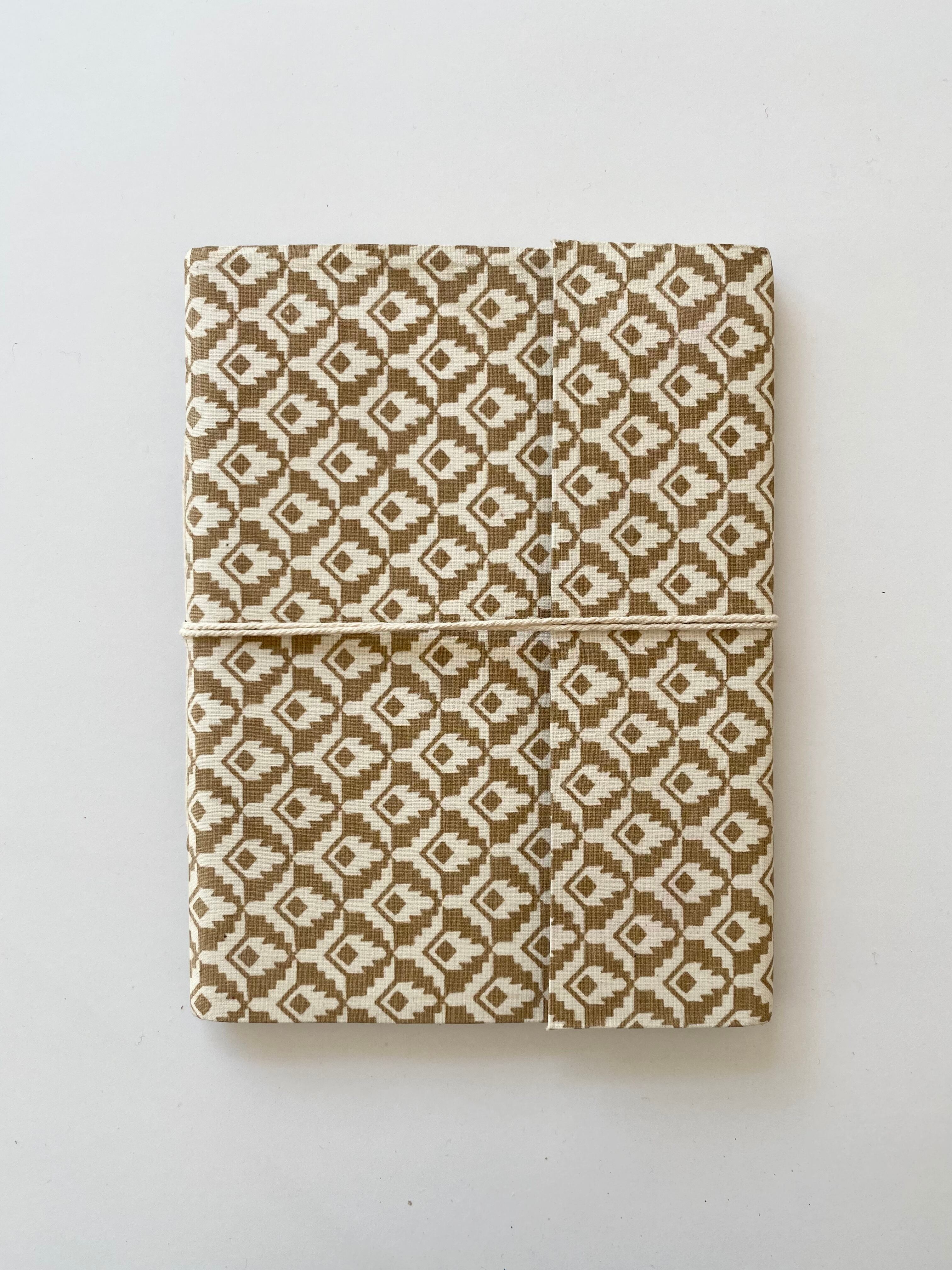 カバーはブロックプリント、中はコットンをリサイクルした手漉きの紙を紐で閉じた、オールハンドメイドのノートです。少し厚みや凹凸があり手触りが良く、漂白された紙とはひと味違う温もりを感じます。